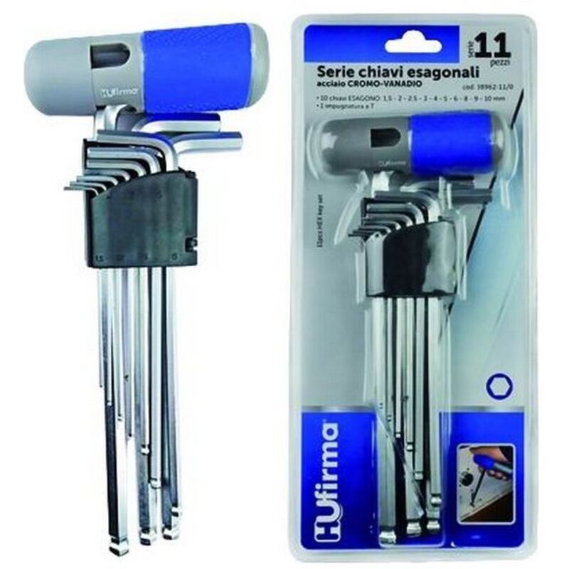Serie chiavi hu-firma cromo vanadio durezza hrc48-52 10 chiavi esagono: 1,5-2-2,5 3-4-5-6-8-9-10 mm 1 impugnatura a t