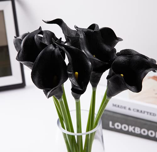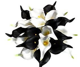 Huaao 24pcs Calla Artificiali in Lattice Nero + Bianco Vero Tocco Realistic Calla Fiori Finti per Finte Calle Bouquet Sposa Decorazione Nozze Matrimonio, Anniversario, Casa, Feste, Ufficio, Nuziale