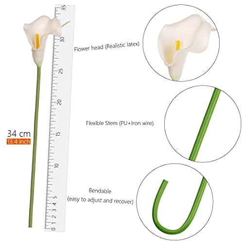 Ogni confezione contiene 24 pezzi di finte in lattice per decorazioni a stelo singolo (vaso non incluso). Abbiamo diverse opzioni di colore, calle fiore artificiale per decorazioni anniversario matrimonio Real Touch come veri bouquet finte calle di fiori realistici, questi fiori sembrano molto pieni e morbidi al tatto.