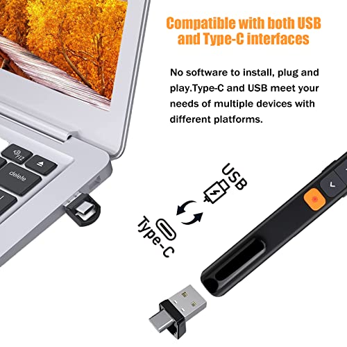 【Benefici del presentatore】 Ricevitore di tipo C e USB 2 in 1, più computer possono essere facilmente utilizzati. La squisita penna di presentazione è lo strumento perfetto per la tua presentazione, classe e riunione e il miglior regalo che puoi fare ai tuoi amici o familiari.