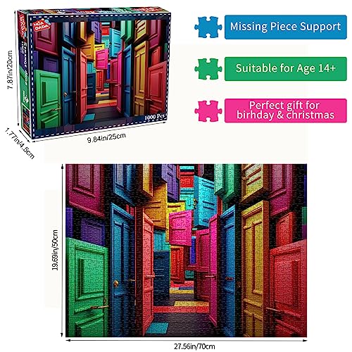 Dimensioni puzzle: puzzle da 1000 pezzi per adulti, 1 poster antiriflesso in scala 1:1, dimensioni finite: 70 x 50 cm. Ci sono porte colorate del mondo e porte diverse portano a mondi diversi che ti offrono un'esperienza nuova e sorprendente.
