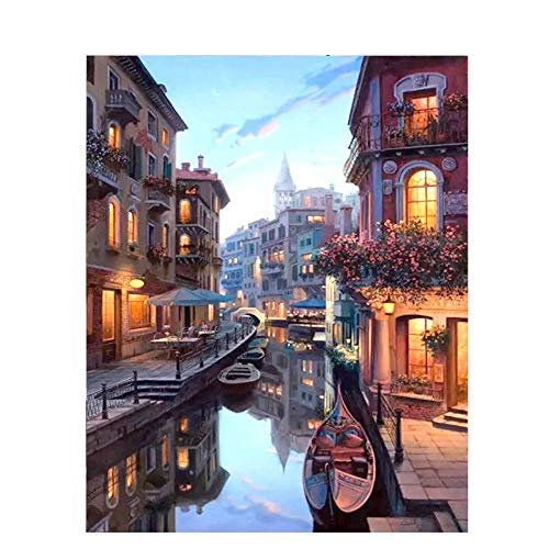Huaduo Venice Night DIY Painting By Numbers Kit Landscape Paint Acrilico su Tela Dipinto a Mano Regalo per la Decorazione Domestica 40x50cm