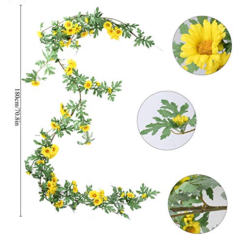 HUAESIN Ghirlande Fiori Artificiali di Margherite Ghirlanda Fiori Finti in Seta Pianta Rampicante per Casa di Nozze Giardino Recinzione Decorazione Giallo 180cm