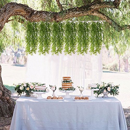 Questo design verde è perfetto per aggiungere un'aria fresca alla decorazione senza occupare spazio sul tavolo. Le piante finti appese sono rigogliose, abbondanti e traboccanti, creano un ambiente di simulazione, naturale e calmante.