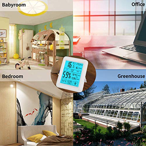HUALANS Termometro Igrometro Digitale Professionale con Touch-Button, Termometro Ambiente Termoigrometro Interno Retroilluminazione Monitor Temperatura/Umidit¨¤ da Interno (batterie esclu