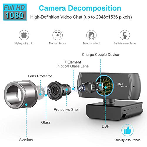 Eccellente qualità di immagine e video, full ad alta definizione 1536p web camera con obiettivo in vetro ottico a 7 elementi, fornisce immagini cristalline. La tecnologia di ottimizzazione del viso ottimizza l'immagine automaticamente, il che ti rende più bella nel video.