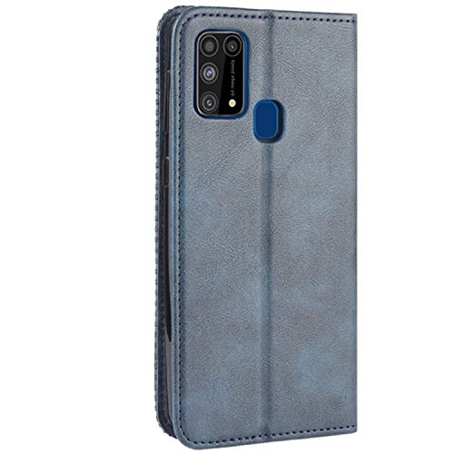 HualuBro Cover per Samsung Galaxy M31, Flip Cover a Libro in Retro PU Pelle Magnetica Antiurto Case Portafoglio Custodia per Samsung Galaxy M31 Cover (Blu)