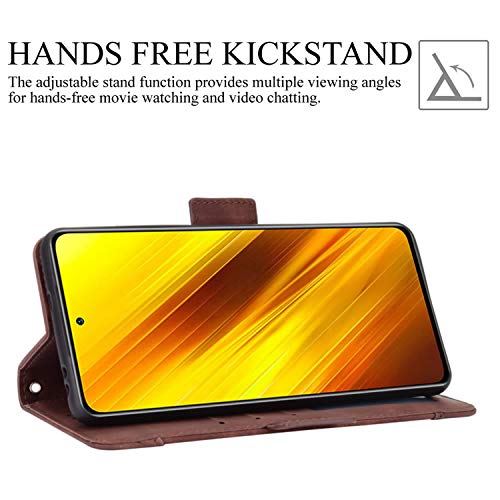HualuBro Cover per Xiaomi Poco X3 NFC, Flip Cover a Libro in Premium PU Pelle Magnetica Antiurto Case Portafoglio Custodia per Xiaomi Poco X3 NFC Cover - Marrone