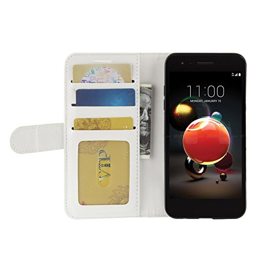 HualuBro Custodia LG Aristo 2, Retro Custodia in Pelle PU Leather Portafoglio Wallet Protettiva Flip Case Cover per LG Aristo 2 Smartphone - Bianco