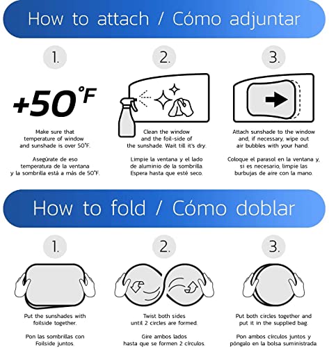 ✨ 【TIPO AUTOADESIVO】La superficie di tendina parasole auto è autoadesiva a causa della carica elettrostatica e può essere fissata a finestre o finestrini laterali senza ventose. Facili da utilizzare e non lasciano residui sui vetri.