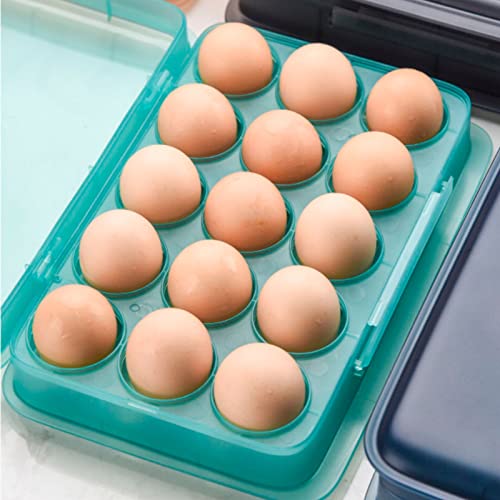 HUANGY Portauova Frigorifero Contenitore per Uova Frigorifero con Coperchio in Plastica, Impilabile Trasparente Porta Uova Contenitore per 15 Uova Frigorifero Casa Accessorio Cucina (blu )