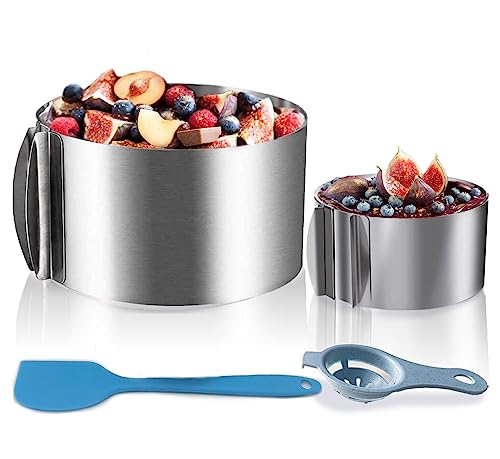 Huanniu 2 PCS Anello per Torte Regolabile, Grande Cerchio per Torte Regolabile Ø 16 - 30 cm con Scala, Piccolo Cerchio Ø 6-10 cm, Stampi Rotondi in Acciaio,con Separatore Uova e Spatola