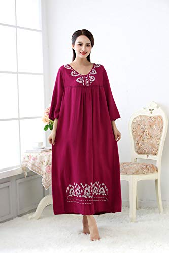 HUANSUN Abito da Notte Taglie Forti da Donna Camicia da Notte Ricamata in Cotone Abito da casa Ampio e Comodo Camicia da Notte Lunga Indumenti da Notte Stampato Grande, Rosa Rossa, M