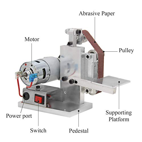 Huanyu Mini Levigatrice a Nastro da Banco Micro Multifunzionale Smerigliatrice con Controllo di Velocità 7 & 10 pezzi di Nastri Abrasivi (330 * 20mm)