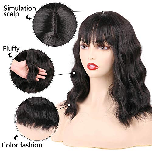 【Black Heat Resistant Wigs】Can Be Heat Styled(Under 180℃), 14”Curly Wavy Black Wig for Women, Ladies Women Wigs Black, High Quality, Cheap Wigs Bob Wigs with Natural Hairline