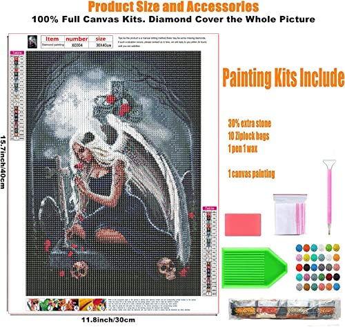 HUASHUZI diamond painting angelo nero ali gotica donna halloween scheletro diamanti painting kit arte pittura diamante foto ricamo punto croce per adulto foto decorazioni