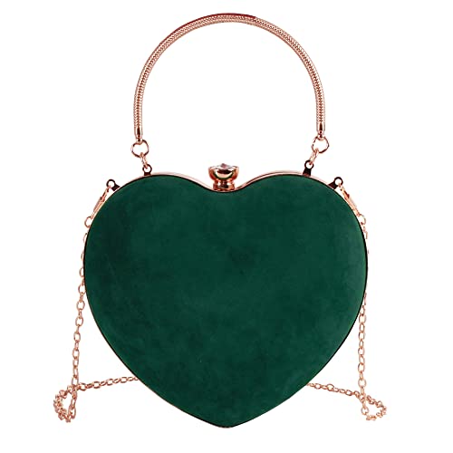 LA HUATE Borsa da donna a forma di cuore a forma di pochette da sera borsa da sposa a tracolla, Verde