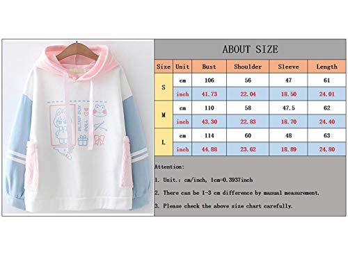 Huateng Felpa con Cappuccio di Caldo Velluto a Maniche Lunghe con Stampato Infantile Giapponese Kawaii Love da Donna, Comodo e Caldo
