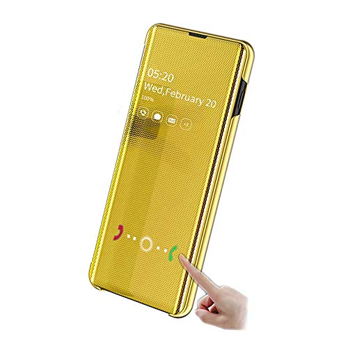 Huatong Electronics Cover per Samsung Galaxy A20E Custodia Cover Book Giallo Traslucido Specchio Smart Protettivo Flip Caso Antiurti Protezione Case Paraurti Copertura Backcover Protezione Regalo