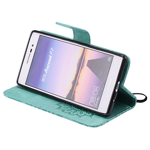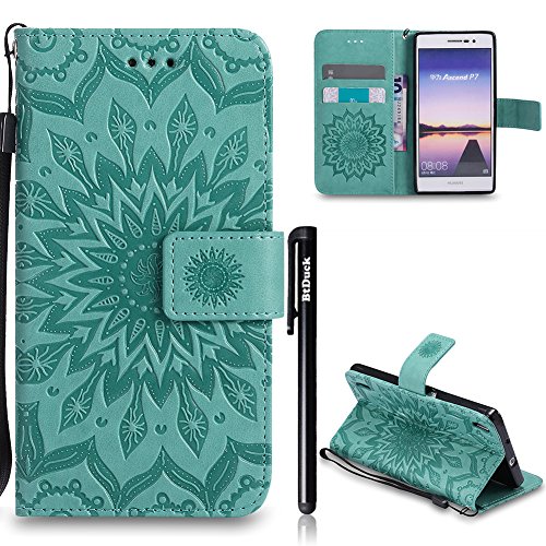Huawei Ascend P7 Cover a Libro,BtDuck PU Pelle Borsa e Portafoglio Tasca Progettato Fiore Retro Modello Libro Silicone Back Case Magnetica Cover Custodia Portafoglio Flip Cover per Huawei Ascend P7