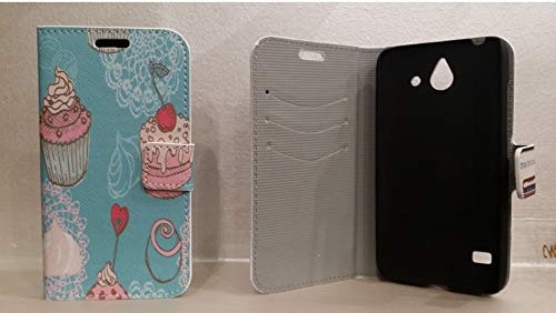 Per huawei ascend y550 / y550 w custodia cover case stand magnetica interno rigida portafoglio eco pelle cupcake glamour dolce muffin