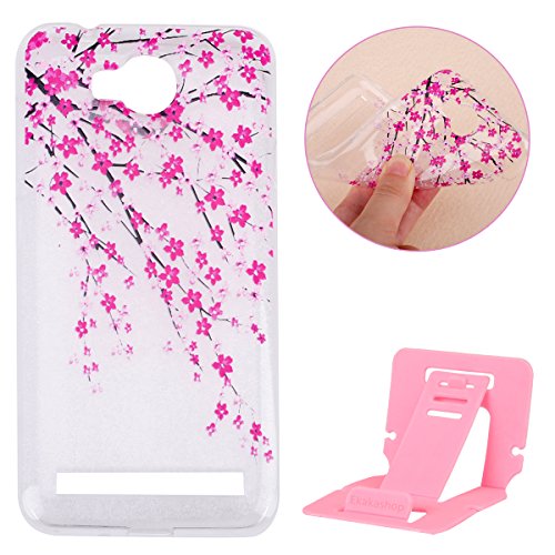 Huawei Y3 II Cover Bumper,Huawei Y3 II Custodia in TPU,Ekakashop 2017 Neo Moda Semplice Rigida Puro Trasparente Ultra Slim Sottile Morbida TPU Gel Silicone Progettato specificamente per Ragazzo Ragazza Disegno Marvel Belle Bello Colorato Resistenza Protettivo Custodia Case Coperture Bumper per Huawei Y3 II con 1x Kickstand - Fiore di Pesco