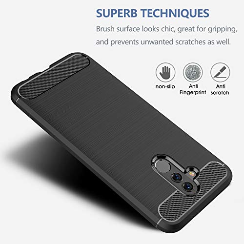 Huawei Mate 20 Lite Cover, Custodia Sottile e Morbida Protettiva in Silicone TPU con Fibra di Carbonio per Huawei Mate 20 Lite 6.3" Smartphone Modello 2018, Nero