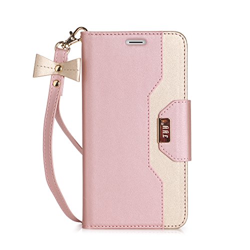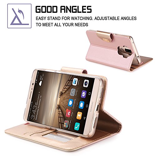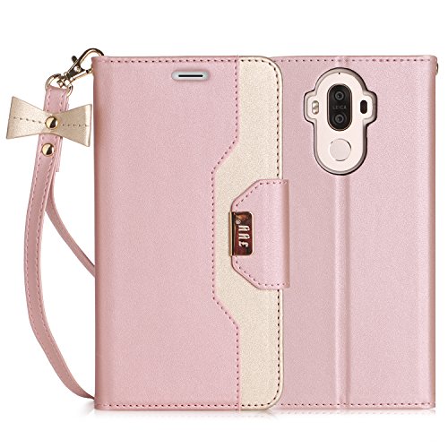 Mate 9,Huawei Mate 9 Cover Pelle,Huawei Mate 9 Cover,Fyy® Fyy® [Trucco dello Specchio] Custodia Raccoglitore di Pelle Premio con Specchio Cosmetico e Arco-Nodo Cinghia per Huawei Mate 9 Rosa Oro