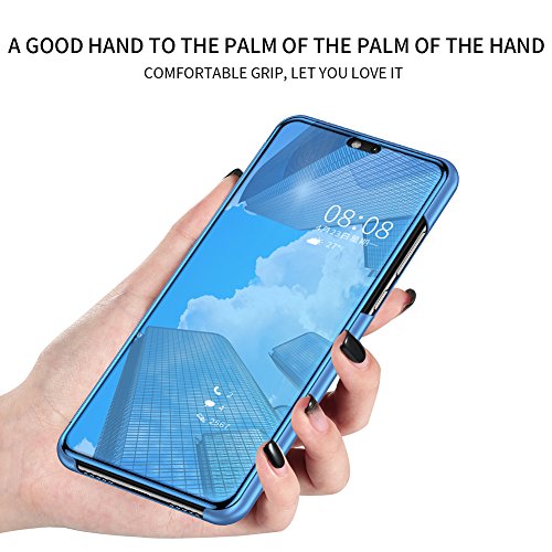 Huawei P20 Lite Cover Specchio,Flip Cover Huawei P20 Lite,BtDuck Custodia Cover Specchio Libro Morbida Protettiva Cover Clear View Flip Custodia Traslucido Cover con Funzione Kickstand Soft Gel TPU Silicone Interiore Antiscivolo Custodia Ultra-Sottile Specchio Smart Cover per Huawei P20 Lite + 1x Nero Stylus Penna - Blu