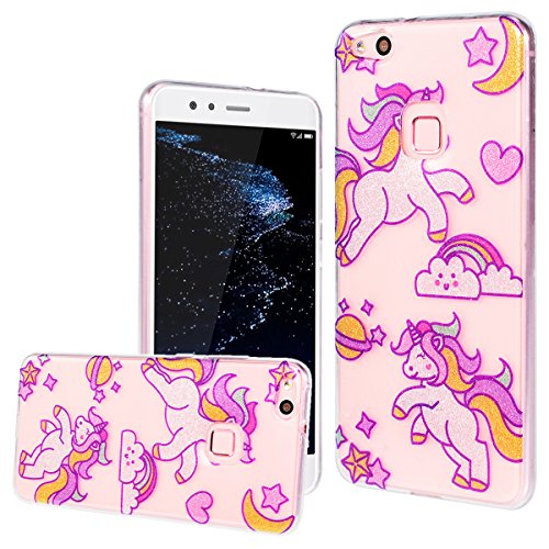 WE LOVE CASE Huawei P10 Lite Cover Trasparente Glitter Rosa Huawei P10 Lite Custodia Silicone Soft Flessibile Elegant Belle Protettiva Antiurto Ultraslim Bumper TPU Gel Gomma Morbido Protezione Girl Brillantini Donna Coper tura Caso Backcover per Huawei P10 Lite 5,2 - Unicorno
