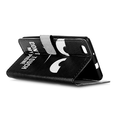 Huawei P8 Lite Case Custodia Flip Cover per Huawei P8 Lite Premio PU in pelle Protettiva, ISAKEN libro Book Style Case Cover con funzione di supporto e chiusura magnetica Per Huawei P8 Lite - DON'T TOUCH MY PHONE