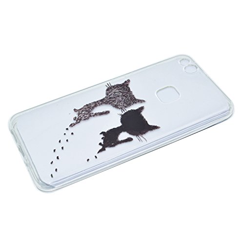 Per Huawei P10 Lite Custodia morbido,Herzzer Mode Crystal Creativo Elegante kitty cat Gatto modello Quadro Dipinto Design trasparente case cover,Unico Molto sottile Modeling Snella Silicone TPU Gel Stilosa Fresco Copertura flessibile Shell Anti scratch di Protettivo Skin Bumper caso per Huawei P10 Lite + 1 x Gratuito Basamento Telefono Nero Regolabile + 1 x Gratuito Pennino Nero