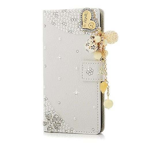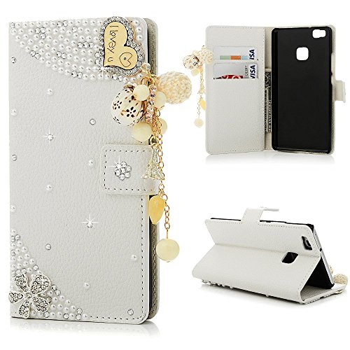 Huawei P9 Lite Custodia Pelle Folio e Glitter Bling Strass 3D DIY con Cinghie di telefono - Mavis's Diary Case Fatto a Mano Diamonte,PU Leather Con Super Sottile TPU Cover Interno,Morbido Protettiva Portafoglio con Supporto,Chiusura Magnetico Flip Cassa,con ID Slot per Schede - Progettazione Amore e fiori