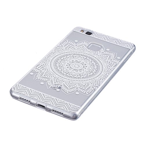 Huawei P9 Lite Custodia, Pridot Vivido Colore Case Morbido Flessibile TPU Protettivo Cover Classico Mandala Modello Bumper per Huawei P9 Lite Sottile Silicone Caso Bianco