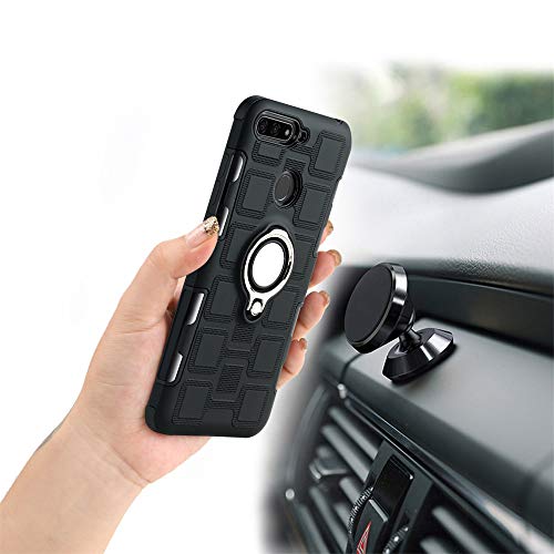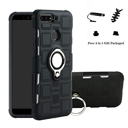 LFDZ Huawei Y6 2018 Custodia, Resistente TPU Case Design 360 Grado Rotazione Protective Custodia Cover per Huawei Y6 2018 / Honor 7A / Enjoy 8E Smarphone(con 4in1 Regalo impacchettato),Nero