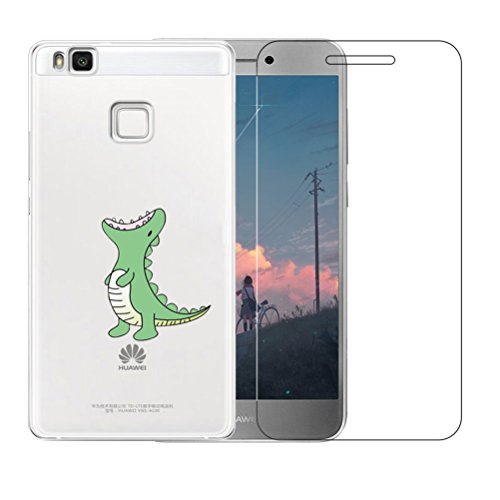 Huawei P9 Lite Custodia [con Vetro Temperato Screen Protector Film] [Bellissimo Modello] Blossom01 Cover Ultra Sottile in Gel Morbido TPU Silicone Case per Huawei P9 Lite - Coccodrillo Verde