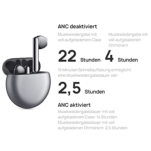 HUAWEI FreeBuds 4, cuffie Bluetooth True Wireless con cancellazione attiva del rumore, sistema a 3 microfoni, garanzia Silver Frost di 30 mesi