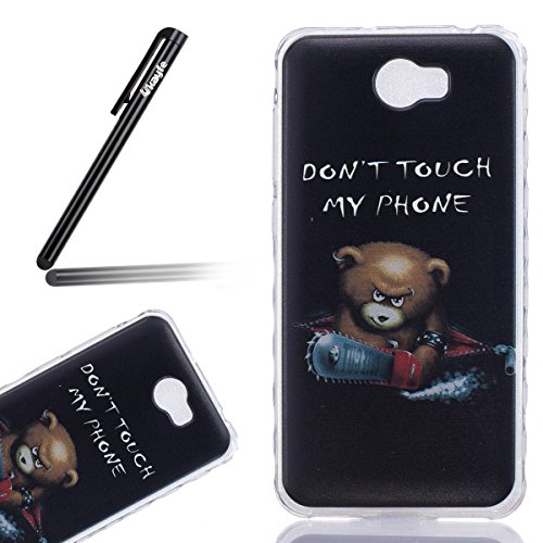 Huawei Y5 II/Huawei Y5 2 Custodia Back cover, Ukayfe Chic personalizzata marche popolari dipinte Bumper Cover fit ultra Sottile Silicone Macchia Irregolare Morbida Flessibile TPU Gel Estremamente sottile pelle antigraffio Silicone Protettivo Skin Protettiva Shell Case Cover con Chainsaw Orso Pittura Per Huawei Y5 II/Huawei Y5 2 Con Stilo Penna