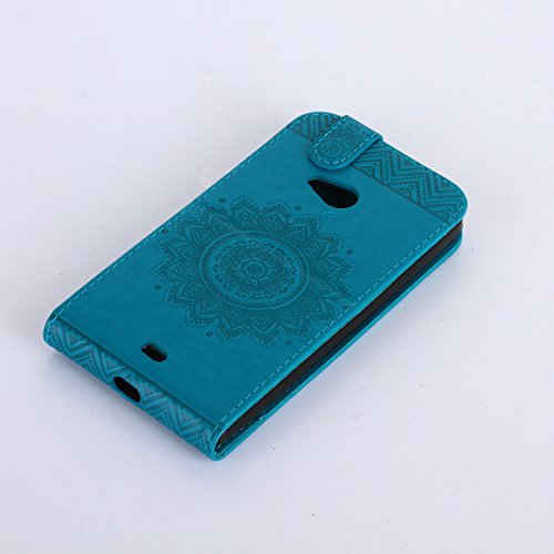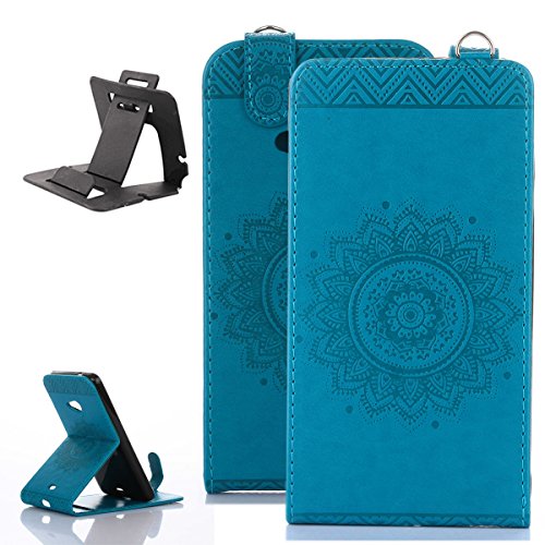 Huawei P8 Lite/Huawei P8 mini case (free con supporto in plastica), Keyye PU Premium in mandala Flower design in pelle goffrata, in stile con funzione di supporto e ID slot Flip Cover in pelle per Huawei P8 Lite/Huawei P8 mini - oro blu Blue Microsoft Lumia 535 Nokia N535