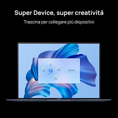 【Super Device, super creatività】 Aumenta incredibilmente la tua produttività attivando la funzione Super Device. Ti basta trascinare per connettere HUAWEI MateBook X pro a più dispositivi, come smartphone, tablet, monitor, cuffie e alcuni laptop HUAWEI.