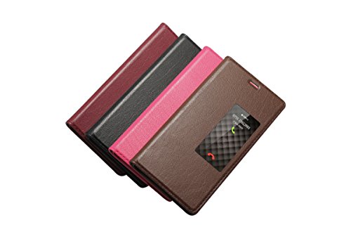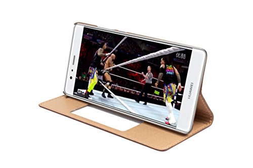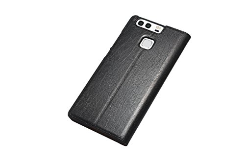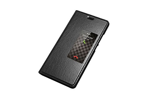 ERLI Huawei P9 VERA PELLE Custodia, Ultra-Sottile Clamshell Con ID Chiamante [Smart Window View]+Intelligente Sleep + PC Materiale Guscio Inferiore Protector Screen (Nero)