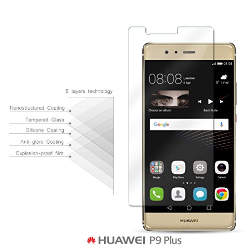 Huawei P9 Plus proteggi schermo, eProte pellicola protettiva in vetro temperato per Huawei P9+ Dual SIM - 5.5 pollici - 9H, antiurto, antischegge, antigraffio, rivestimento oleorepellente, trasparenza in HD