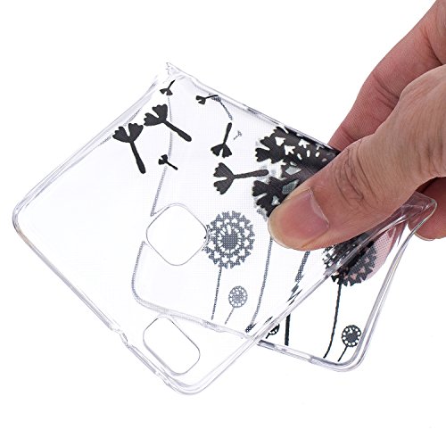 HUAWEI P9 Lite gel di Silicone Caso (con Gratuito Proteggi schermo) CaseHome Retro Annata Stile Nero Stampato Modello Design Ultra Magro Sottile Cristallo Pulire Antiurto Morbido Gomma da Cancellare Trasparente Paraurti Antigraffio Protettivo TPU Astuccio Copertina Pelle Conchiglia per HUAWEI P9 Lite-Dente di Leone