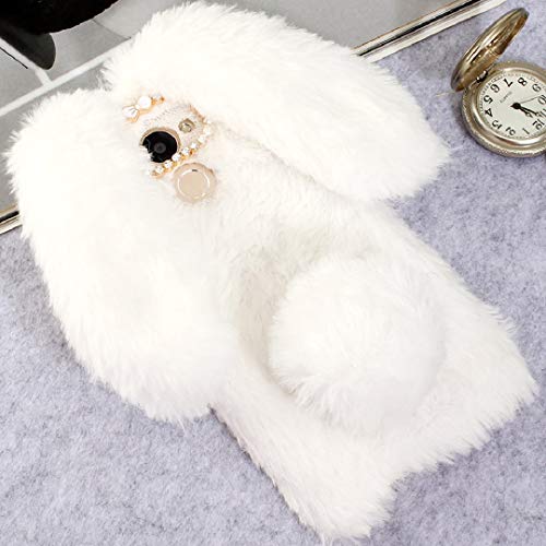 Huawei P8 Lite Smart Art Case, Handmade Fluffy Villi Rabbit Baby Wool Cute Ball Tail Winter Warm Soft Cover, TAITOU Beautiful Special Big Ear Design Light Slim Case For Huawei G8 Mini White
