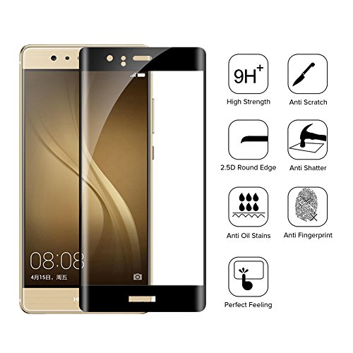 HUAWEI P9 Vetro Temperato, Foraco HUAWEI P9 Full Screen Pellicola Protettiva 3D Curva Copertura Completa 9H Durezza Scratch Resistente HD per HUAWEI P9 Lite - Nero