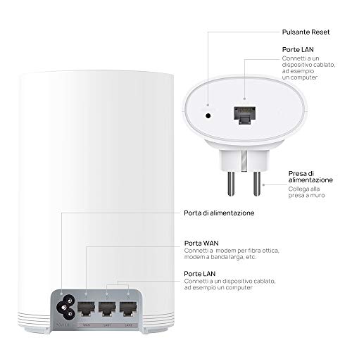 La base e il satellite utilizzano la tecnologia di comunicazione Gigabit powerline, che consente a te e alla tua famiglia di usufruire del Wi-Fi ad elevata velocità in ogni angolo della casa