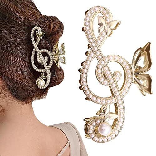 Huaxingda Fermaglio per Capelli in Metallo | Artigli per Capelli a Forma di Nota - Mollette Dorate per Capelli Spessi, Accessori per Fermagli con Artigli a Farfalla Grandi per Capelli Medi e Sottili