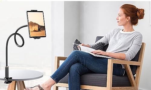 Huayifa Supporto per tablet, collo di cigno, braccio flessibile regolabile a letto, per iPad, cellulare, switch/Samsung Galaxy Tabs/Kindle Fire HD, ecc., lunghezza totale 98 cm (nero)