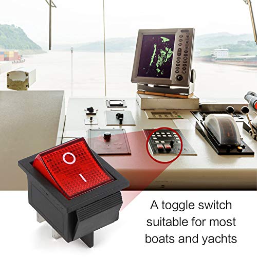 Huayue 6 Pezzi Interruttore a Bilanciere a 4 Pin ON/OFF SPDT con Luce Rossa Interruttori a Levetta con Copertura Impermeabile Pulsante a Bilanciere 16A 250V/20A 125V-3 * 3,5cm