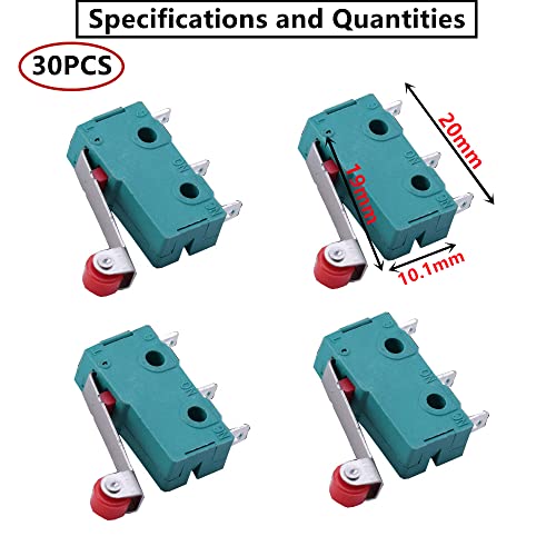 HUAZIZ 30 Pezzi Mini Interruttore a Levetta SPDT Finecorsa SPDT con Rullo Rosso Micro Finecorsa 3 pin 250 V 5A SPDT 1NO 1NC, Verde